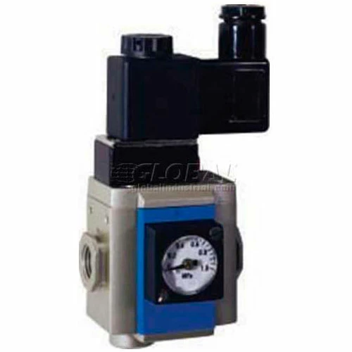 MGV300-10 Soft-start valve with 3/8 in NPT Inlet and Exhaust ports, 24VDC solenoid, used to allow air into the pneumatic circuit slowly for safety. Adjustable start speed. Mounting bracket included.