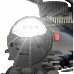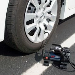 The Campbell Hausfeld 12 Volt, 150 PSI Inflator (AF010400) is portable, yet powerful enough to meet all your inflation needs from sports equipment to RV/truck tires and everything in between. A 31 in. hose with a threaded leak-proof valve and a 10 ft. power cord makes it easy to reach every tire on your vehicle. In a roadside emergency or in your own driveway, this inflator has an accurate, easy-to-read gauge, & a bright LED light for night-time visibility. With the power to inflate a standard R15 tire in less than 4 minutes, the powerful motor delivers results in an efficient manner. Includes a sports needle, inflation nozzle and Presta adapter to tackle recreational inflation as well.