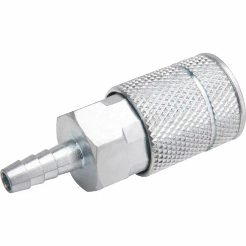The Freeman Zinc 1/4 Inch x 1/4 Inch Automotive Barbed Coupler features a secure 4-Ball connector for quick and secure connections. In-line valve keeps hose pressurized when disconnected and helps to reduce whip. Features a NPT 1/4 Inch fitting along with a 1/4 Inch snap-in style fitting for easy connections.