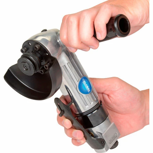A reliable addition to any workshop, the Global Industrial™ 4″ Right Angle Air Grinder delivers up to 11,000 RPM and features rugged aluminum housing for lasting durability. This front type exhaust air grinder includes a steel guard and side handle to provide maximum leverage. The base is made to grip easily while wearing gloves for simple one-handed operation. 1 Year Limited Warranty.
