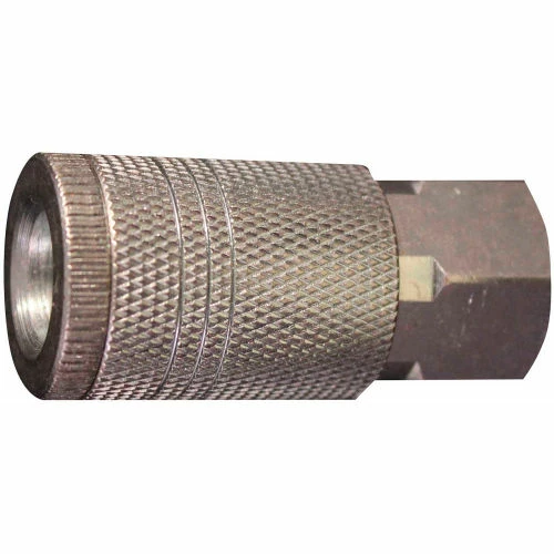 1/4″ FNPT D style coupler has a 1/4″ basic flow size and is steel plated to resist rust. Has a maximum inlet pressure of 300 PSI and air flow of 34 SCFM. Complete with a Buna-N seal. D style couplers and plugs are ideal for automotive application.