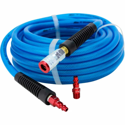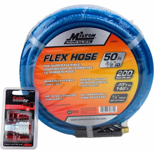 MILTON 3-Piece M-Style ColorFit™ now offers a customized color-coded system that allows for easy matching of couplers and plugs, among the range of standard Industrial pneumatic air coupler quick connects. Great way to solve that annoying problem of potential cross-contamination between different air lines. By dedicating certain colors to different air lines, this will eliminate the risk of mixing a lubricated line with a dry air line which will prolong your applications and help to quickly finish any project. Each piece is coated with Anodized Red aluminum and heavy-duty steel sleeves to prevent scratches or dulling of the coupler and plug after use.