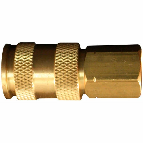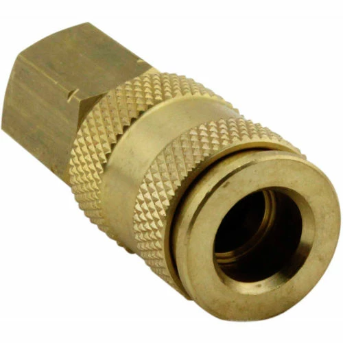 High flow 3/8″ FNPT V style coupler has a push type sleeve release; simply push plug into coupler to engage pull sleeve back to remove. Perfect for high volume low pressure applications. Milton V style couplers will also accept M Style and A Style plugs however to retain maximum flow use Milton V style plugs.